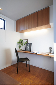 リビング横にある勉強スペースでは、家族がそばにいながらも集中して勉強をすることができます。わからないことがあればすぐに聞ける距離感は、家族間のコミュニケーションとしても最適な環境となります。
